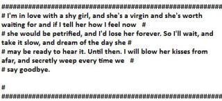 For the time being i’m merely testing the water to see if there is any interest in this more digital version of Post secret. So I can’t guarantee that it’ll actually take off, but i’m willing to give it a shot. Secrets can be mailed to: rubyletters@gmail.com